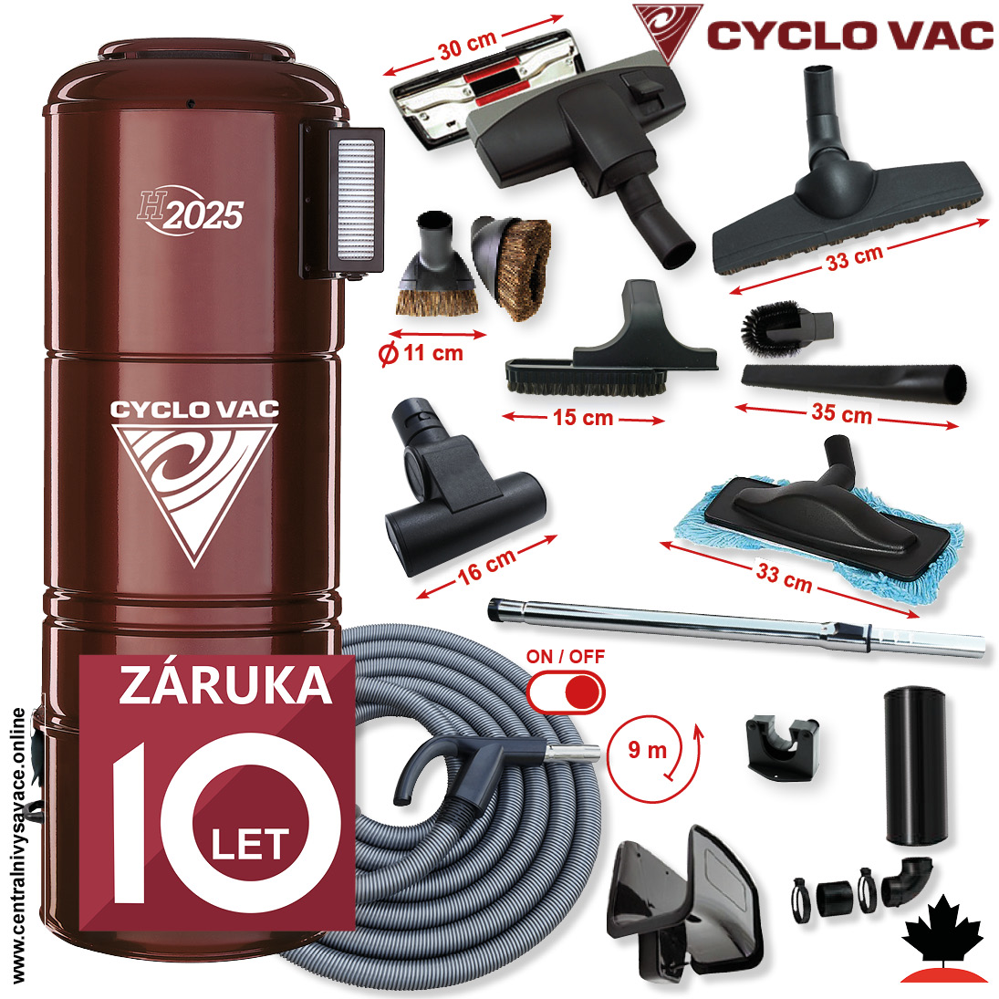 Centrálny vysávač CYCLOVAC H2025 (750 AW) + Sada príslušenstva ELITE s hadicou 9,1 m (12 ks). Záruka 10 rokov.