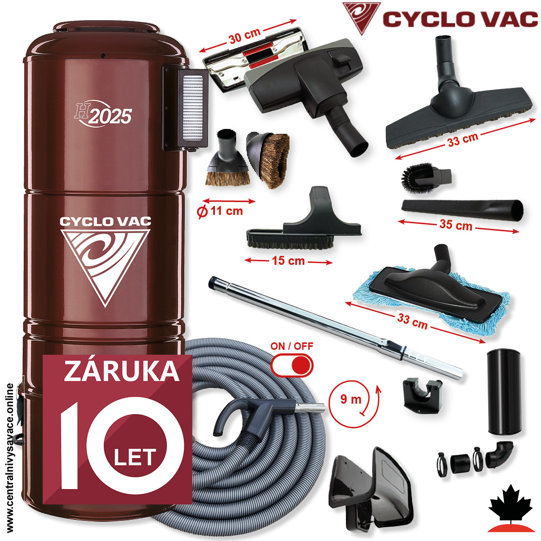 Centrálny vysávač CYCLOVAC H2025 (750 AW) + Sada príslušenstva PREMIUM s hadicou 9,1 m (11 ks). Záruka 10 rokov.