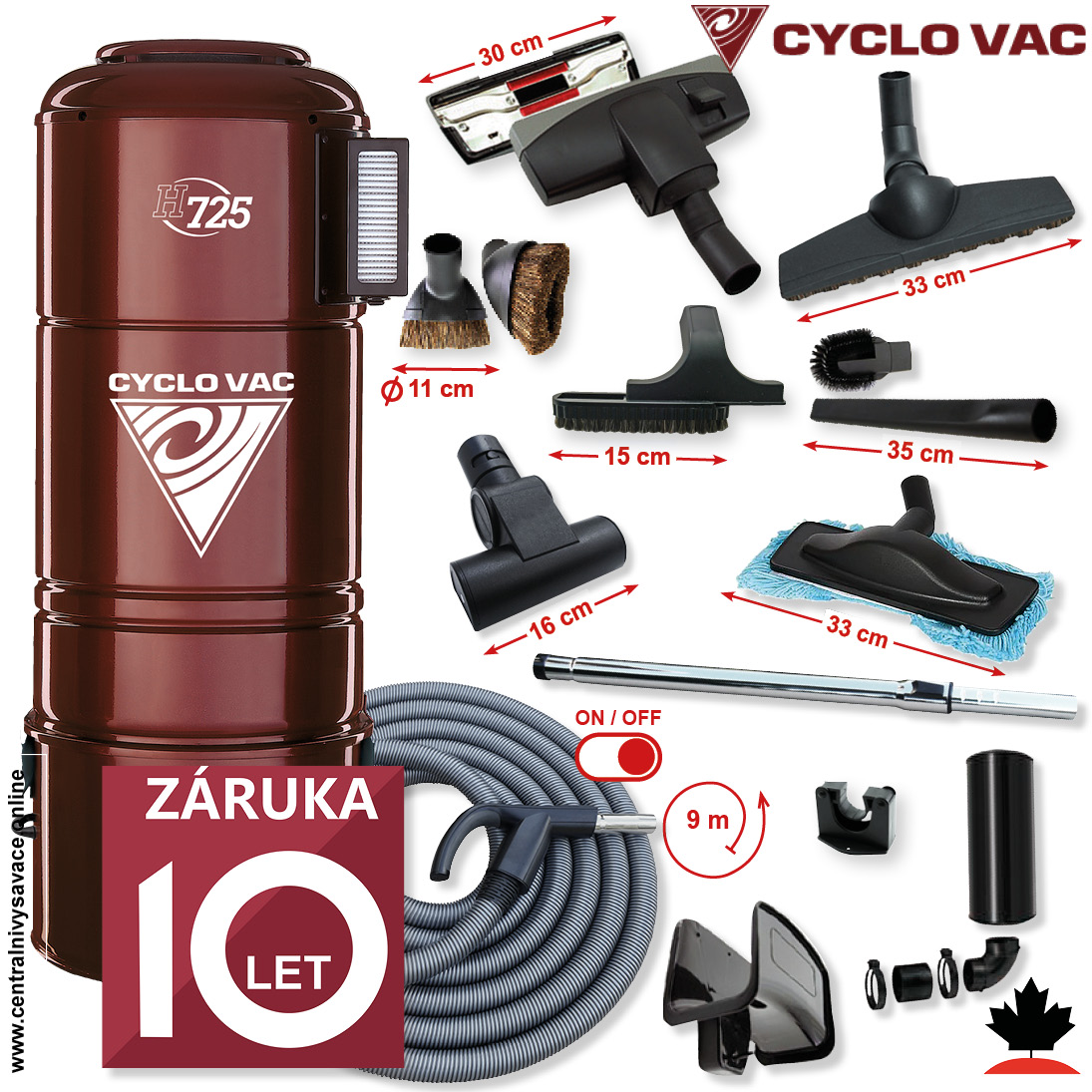 Centrálny vysávač CYCLOVAC H725 (710 AW) + Sada príslušenstva ELITE s hadicou 9,1 m (12 ks). Záruka 10 rokov.