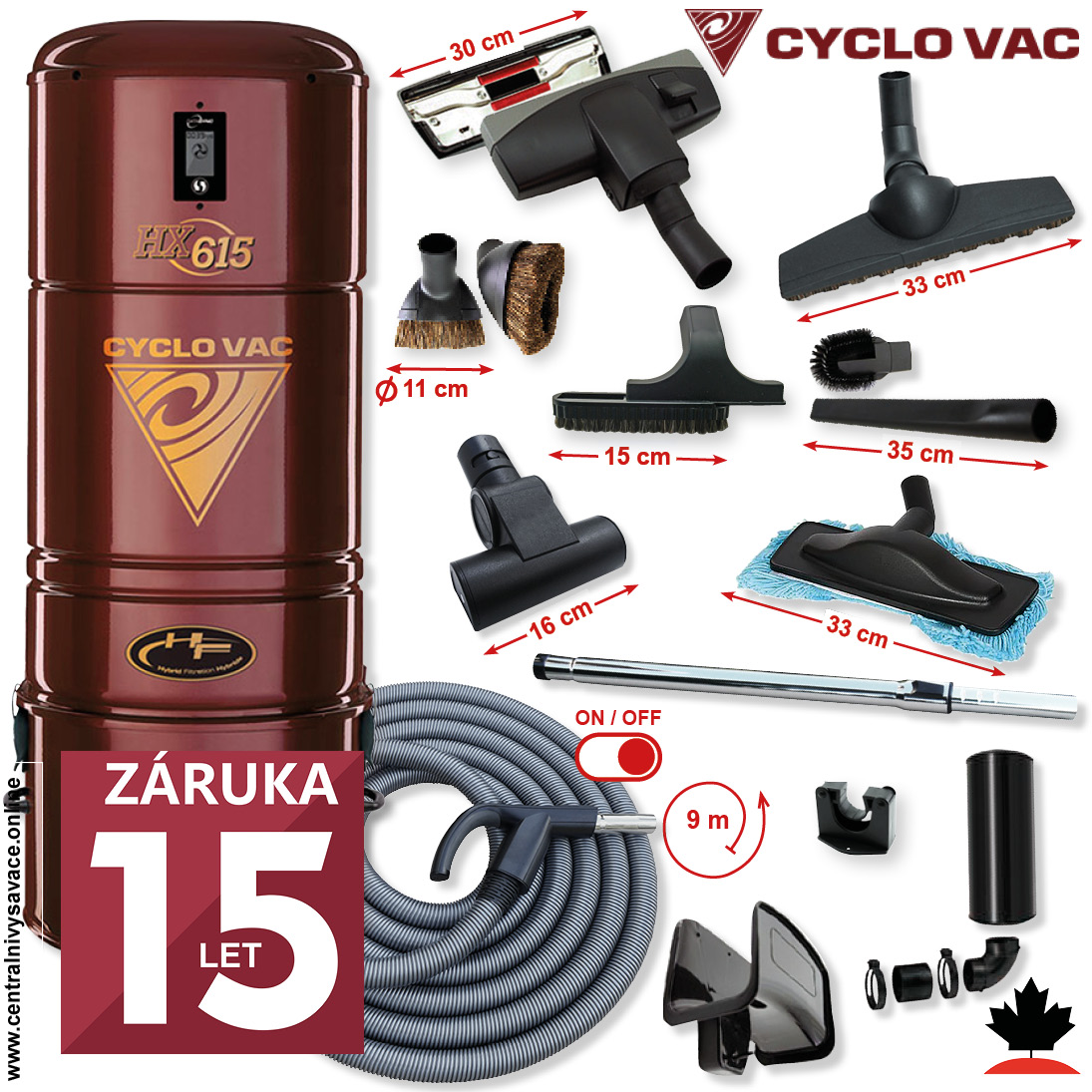 - Centrálny vysávač CYCLOVAC HX615 (712 AW) + Sada príslušenstva ELITE s hadicou 9,1 m (12 ks). Technológia DATASYNC. Záruka 15 rokov.
