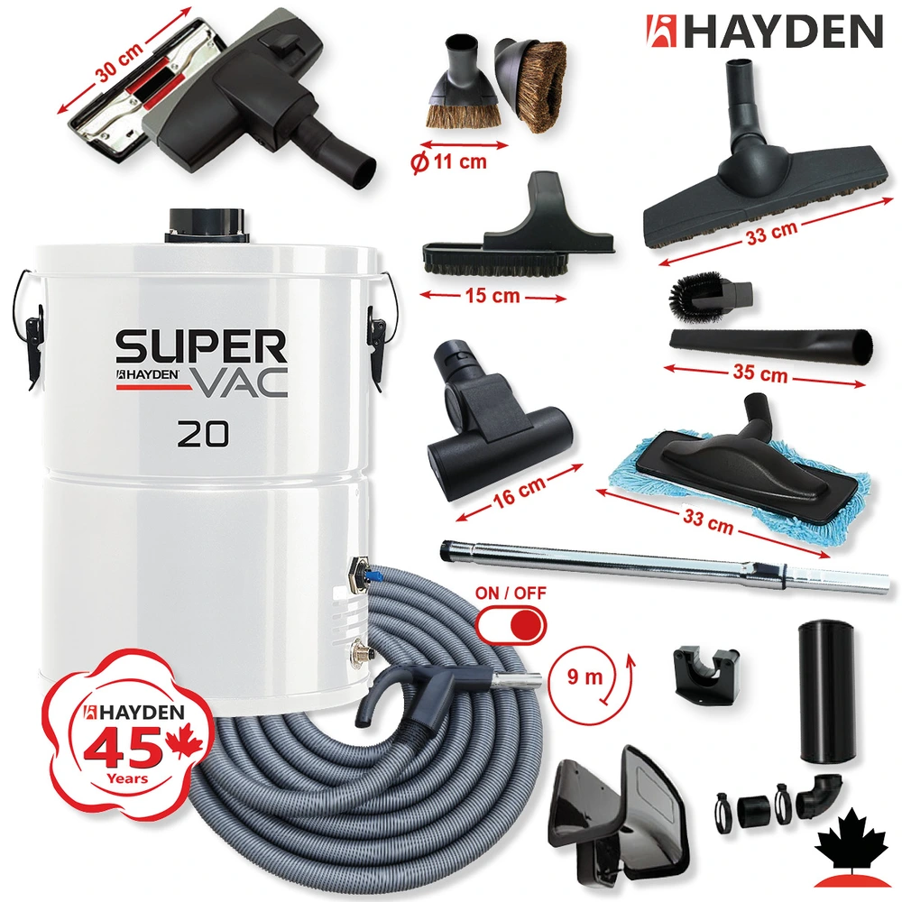 Centrálny vysávač HAYDEN 20 Super Vac (506 AW) + Sada príslušenstva ELITE s hadicou 9,1 m (12 ks).