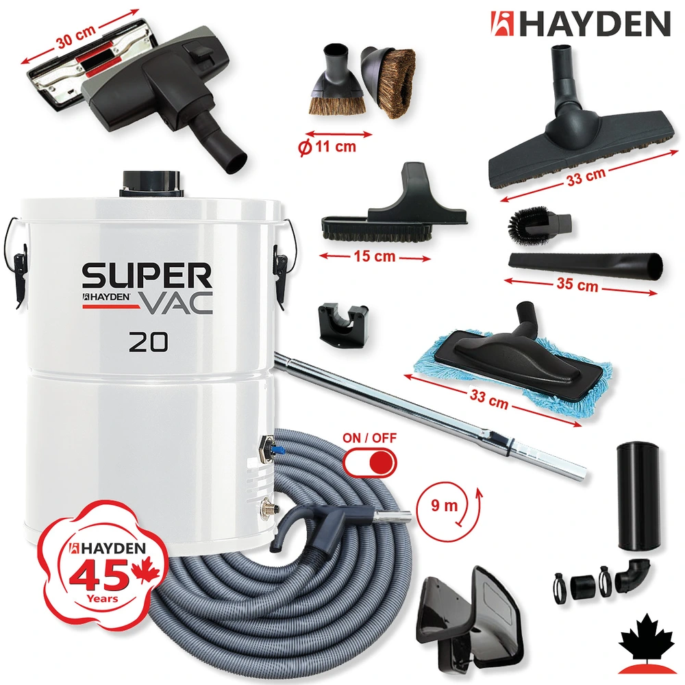 Centrálny vysávač HAYDEN 20 Super Vac (506 AW) + Sada príslušenstva PREMIUM s hadicou 9,1 m (11 ks).