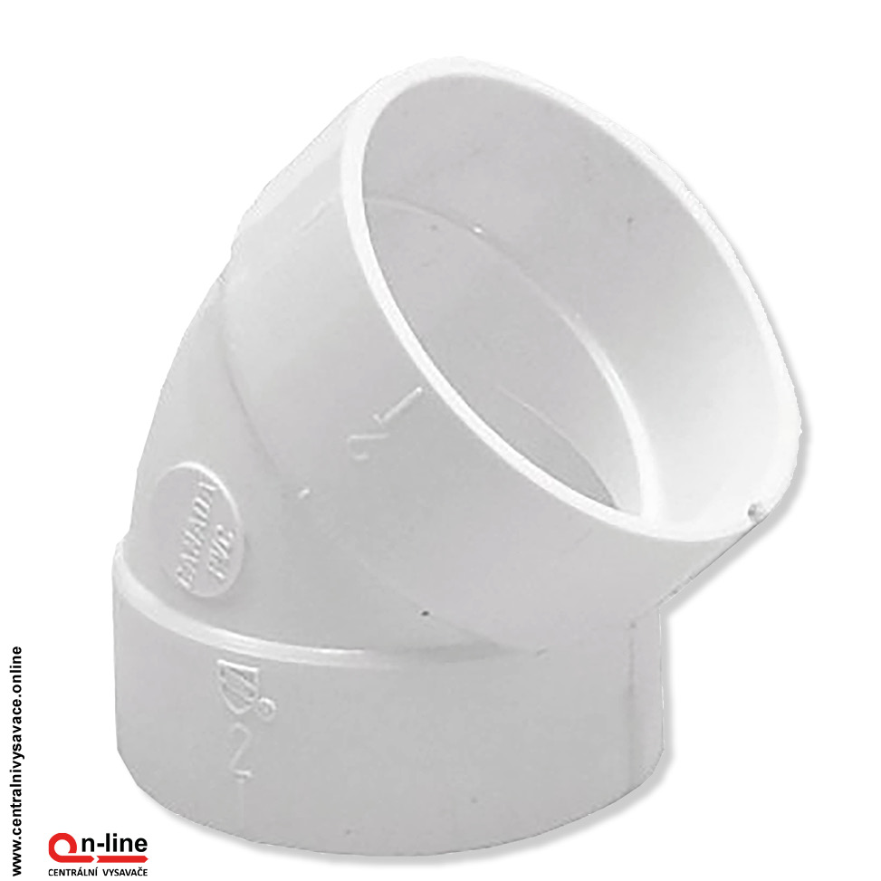 Koleno 45° F/F je originálnym kanadským potrubným prvkom (fitinkou) pre inštaláciu centrálneho vysávača. Špeciálne upravený nepriľnavý povrch zaisťuje trvalo vyššiu účinnosť sania Vášho centrálneho vysávača.