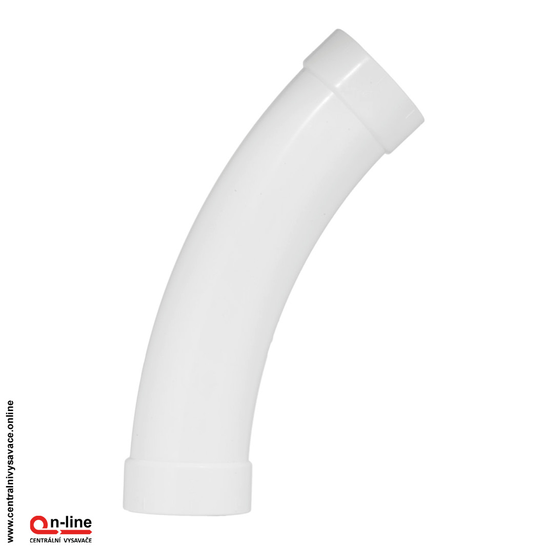 Koleno 45°, určený na montáž skrytej hadice Retraflex. Oblúk je vyrobený z PVC, odolného proti opotrebovaniu, a má vhodný profil, ktorý umožňuje hadicu Retraflex plynulé zasunutie po centrálnom vysávaní.