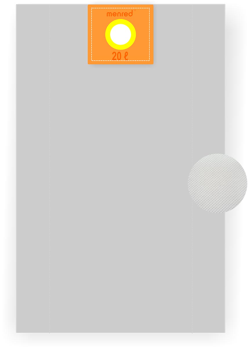 Velkoobjemový filtrační sáčky (20 l) z netkané třívrstvé textílie SMS (Spunbond Melt-blown Spunbond) speciálně vyvinuté pro centrální vysavače MENRED (CVS 1200, CVS 1600BP a CVS1800BP).