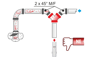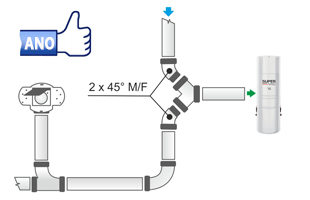 Pomocou obojstrannej odbočky Y 45° a dvoch kolien 45° M/F (nie sú súčasťou odbočky Y), možno veľmi ľahko spojiť dve horizontálne či vertikálne (protibežné) vetvy centrálneho vysávania. Pri inštalácii Y odbočky do systému centrálneho vysávania je potrebné sa vyvarovať týchto nevhodných zapojení (viď. príklady).
