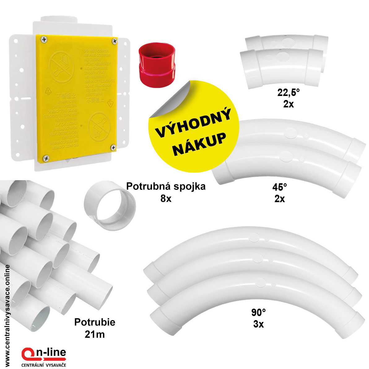 - Sada potrubných dielov (21 m) - na inštaláciu skrytej hadice v stene Retraflex 18 m, určenej na centrálne vysávanie