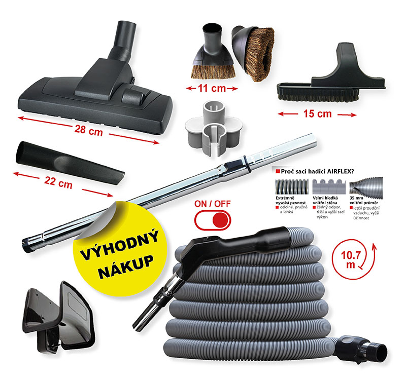 Príslušenstvo na vysávanie COMFORT so sacou hadicou (10,7 m) - kvalitné a vysoko odolné originálne kanadské príslušenstvo určené na centrálne vysávanie pre jednoduché a bezproblémové upratovanie