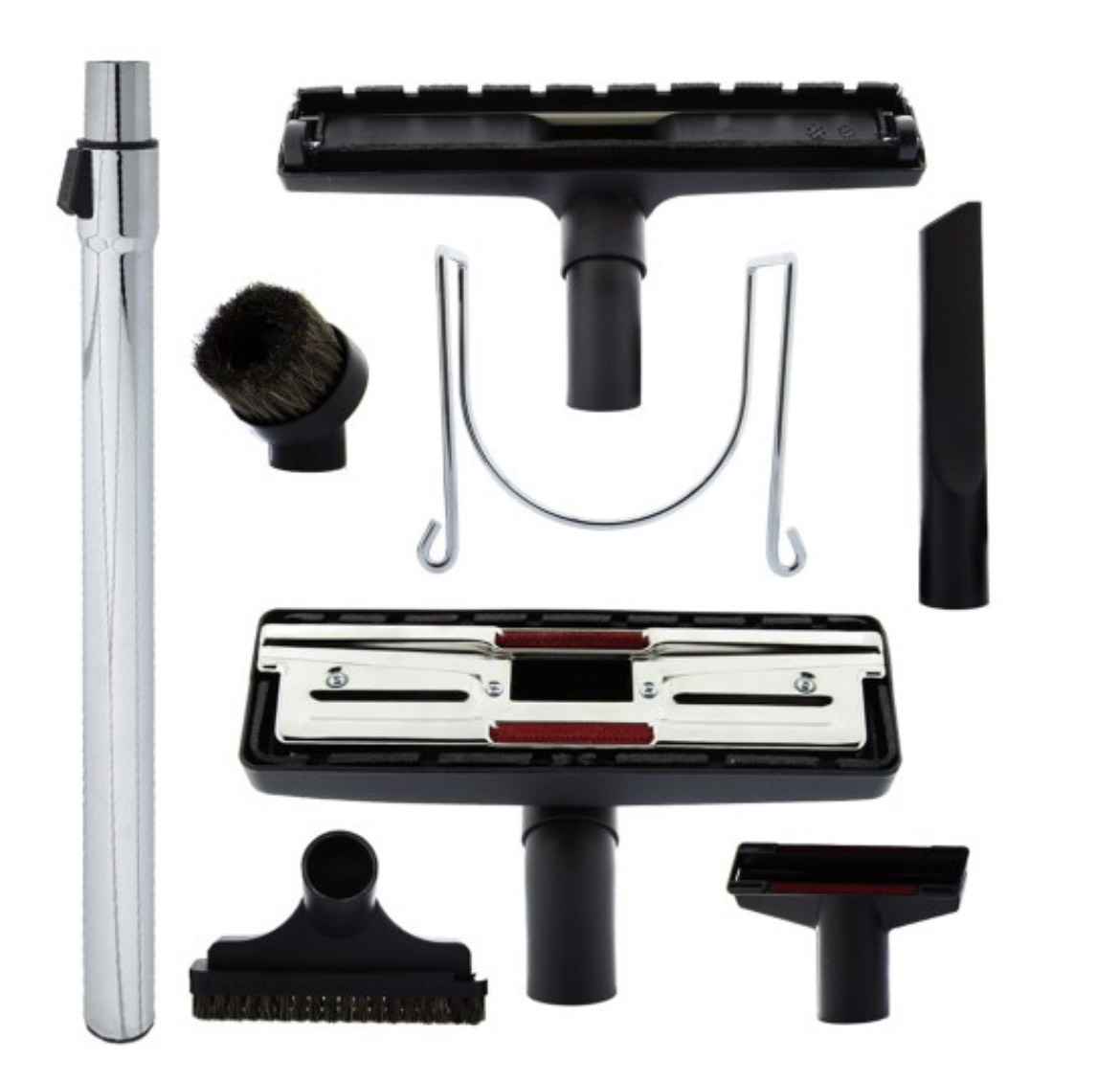 Príslušenstvo na vysávanie ECONOMY - 9 ks, podlahová hubica 30cm a 27cm, štrbinová hubica, prachovka, hubica na čalúnenie 2ks, vešiak 2ks. Kvalitné a vysoko odolné originálne kanadské príslušenstvo určené na centrálne vysávanie pre ľahké a bezproblémové upratovanie.