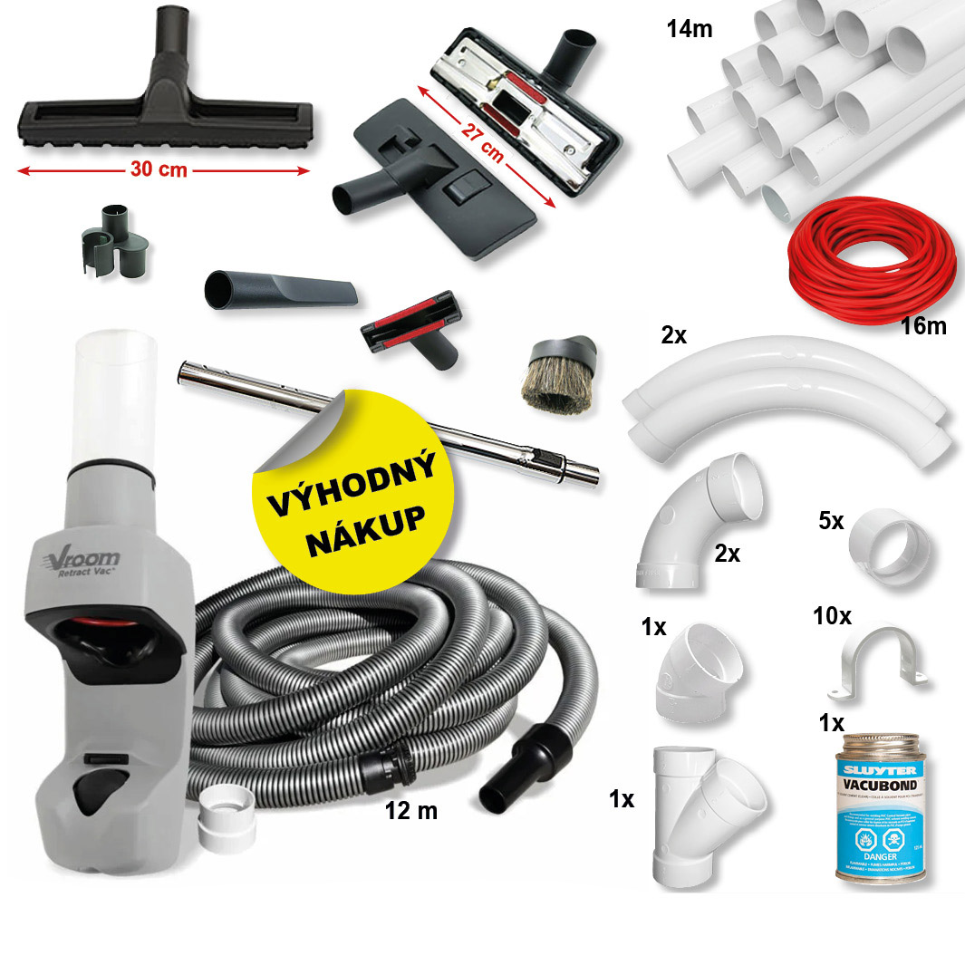 - Vroom Retract Vac 12,2 m - Zasúvacia hadica do garáže - Inštalačný komplet s potrubnými dielmi, zaťahovacou hadicou a príslušenstvom na centrálne vysávanie (8 ks).