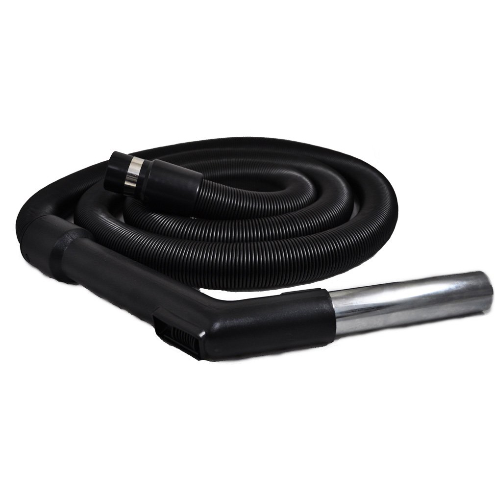 Akonáhle prestanete vysávať a uvoľníte mierne napätie, hadica sa opäť postupne vráti (smrskne) na svoju pôvodnú dĺžku - 1 m. Sacia pištoľ zmršťovacej hadice je vybavená odolnou chrómovou koncovkou a podtlakovou reguláciou sania. Kovový krúžok s koncovkou na opačnej strane sacej hadice zaisťuje pohotové zopnutie centrálneho vysávača.